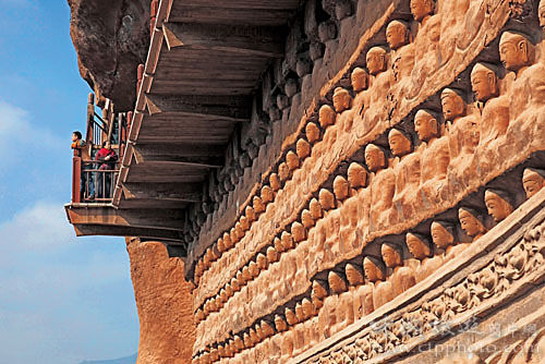 這里的泥塑大致可以分為突出墻面的高浮塑,完全離開墻面的圓塑,粘貼在墻面上的模制影塑和壁塑四類。其中數(shù)以千計(jì)的與真人大小相仿的圓塑,極富生活情趣,被視為珍品。石窟建自公元384年,后來經(jīng)過十多個朝代的不斷開鑿、重修,遂成為中國著名的大型石窟之一。