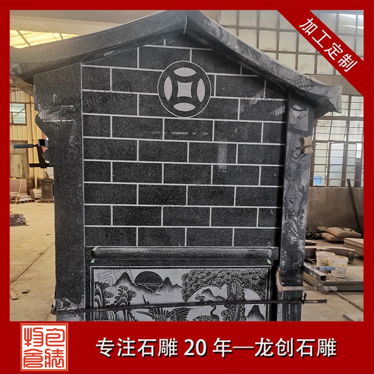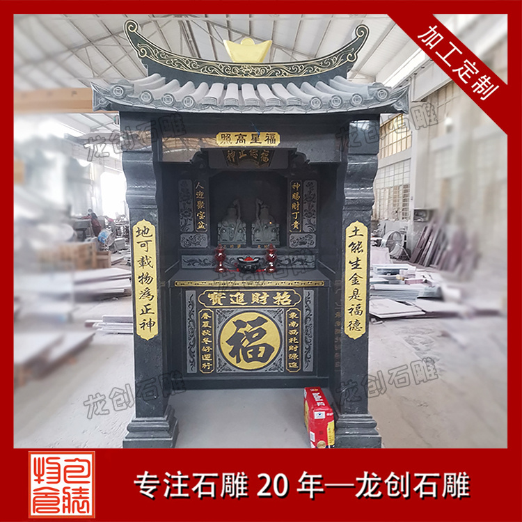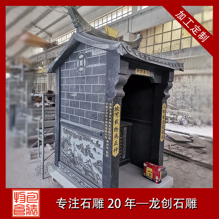 在浙江寧波的金蓮寺改造項目中,一座精美的石雕土地廟成為點睛之筆。這座土地廟采用優(yōu)質(zhì)芝麻黑654石材,質(zhì)地堅硬,色澤溫潤。廟身的雕刻工藝精湛絕倫,高2.9米,寬1.36米,深度1.63米,整體造型古樸典雅,遵循傳統(tǒng)廟宇建筑風(fēng)格,飛檐斗拱線條流暢,比例協(xié)調(diào);墻體厚實,雕紋精美,線條流暢。其內(nèi)部空間布局合理,土地神像安置其中,更顯威嚴。
