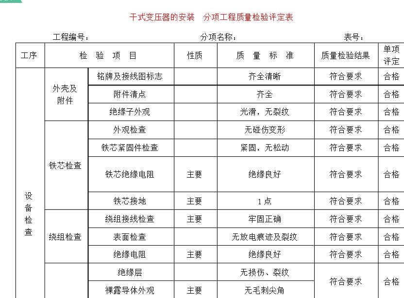 干式變壓器是一種無油工作的變壓器。普通干式變壓器的安裝更為重要。干式變壓器的安裝問題需要引起更多關(guān)注。一般來說,應(yīng)該正確注意。干式變壓器安裝方法不斷提高安裝水平和容量,使干式變壓器更安全,更高效。對(duì)于干式變壓器安裝后還要進(jìn)行評(píng)估,普通公司如何評(píng)估安裝后?以下是常見的表格供您參考: