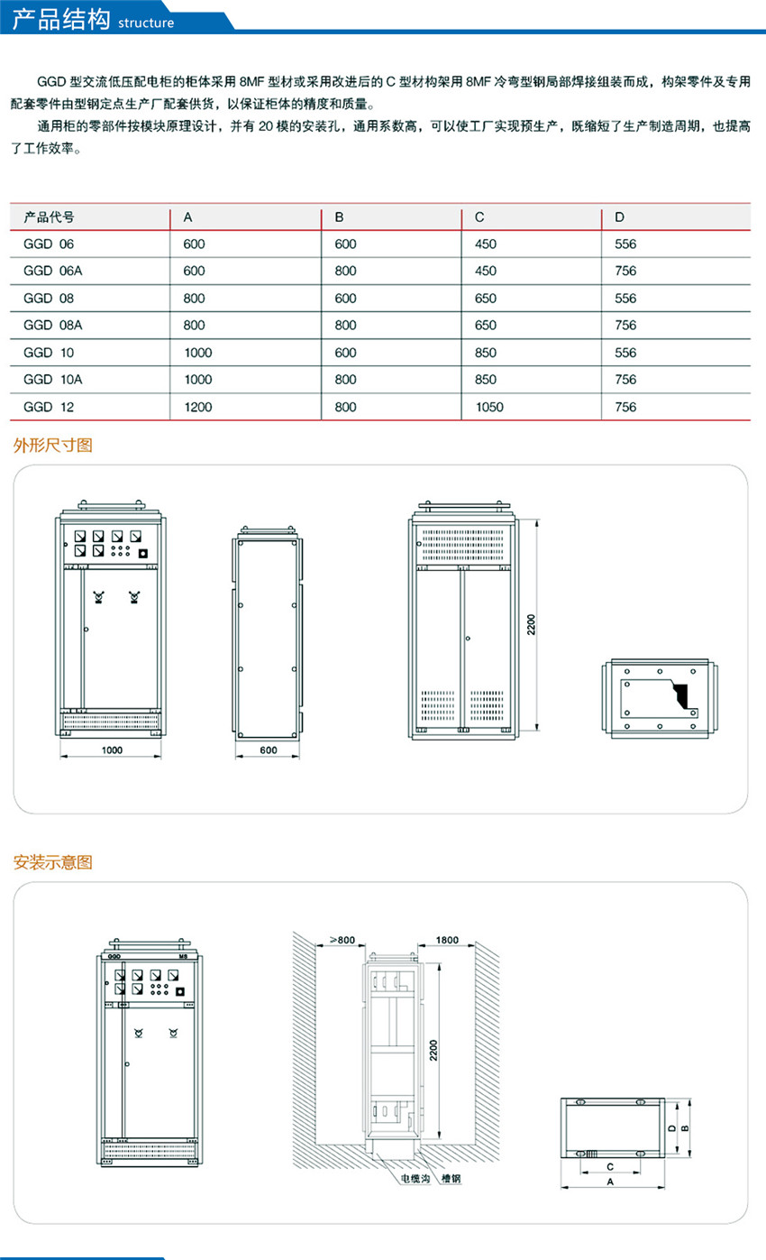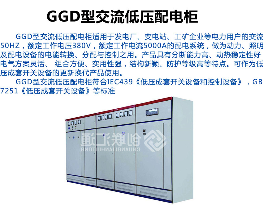 GGD型交流低壓配電柜是根據(jù)能源部主管上級(jí),廣大電力用戶(hù)及設(shè)計(jì)部門(mén)的要求,本著安全、經(jīng)濟(jì)、合理、可靠的原則設(shè)計(jì)的新型配電柜。產(chǎn)品具有分?jǐn)嗄芰Ω撸瑒?dòng)熱穩(wěn)定性好,電氣方案靈活、組合方便,系列性、實(shí)用性強(qiáng),結(jié)構(gòu)新穎、防護(hù)等級(jí)高等特點(diǎn),可以作低壓成套開(kāi)關(guān)設(shè)備的更新?lián)Q代產(chǎn)品使用。并且廣泛適用于發(fā)電廠、變電所、工業(yè)企業(yè)等電力用戶(hù)作為交流50HZ,額定工作電壓380V,額定電流至3150A 的配電系統(tǒng)中作為動(dòng)力,照明及配電設(shè)備的電能轉(zhuǎn)換、分配與控制之用。該產(chǎn)品分?jǐn)嗄芰Ω撸~定短結(jié)構(gòu)新穎等特點(diǎn)。該產(chǎn)品是我組裝式、固定面板開(kāi)關(guān)柜的代表產(chǎn)品之一。