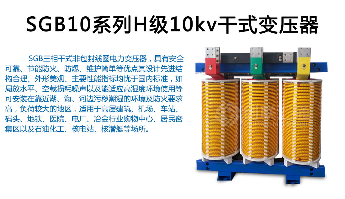 SG(B)10系列H級絕緣干式變壓器采用優(yōu)質(zhì)環(huán)保材料,先進(jìn)的生產(chǎn)檢測設(shè)備按嚴(yán)格的工藝生產(chǎn)而成,具有高性能、高安全、承受熱沖擊能力強(qiáng)等特點(diǎn),它適用于防火要求高、負(fù)荷波動大以及污穢潮濕的惡劣環(huán)境中。如:高層建筑、商業(yè)中心、住宅小區(qū)、醫(yī)院、化工廠、核電站、船舶及其它安全性要求防火、防爆、防潮的配電網(wǎng)絡(luò)與工礦企業(yè)供配電系統(tǒng)等重要或特殊環(huán)境場所。