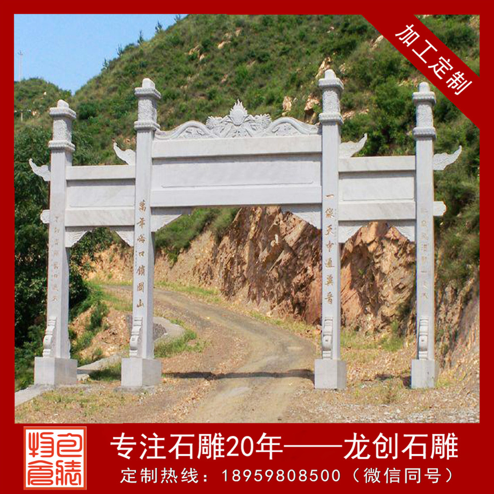 訂購石雕山門牌坊 山門牌坊廠家龍創石雕歡迎您的來電!