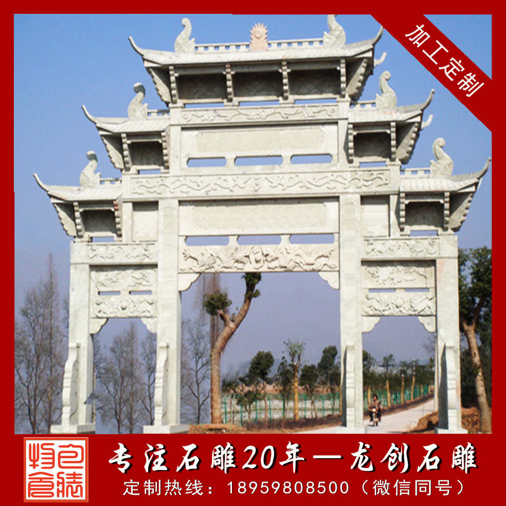龍創石雕專業生產石雕牌坊(石雕牌樓、石雕山門)生產加工廠家,專業從事石雕牌坊生產加工批發,提供各式石雕牌坊(青石牌坊、花崗石牌坊、漢白玉牌坊、大象石雕牌坊),各式石雕山門工藝品造型。誠摯邀請來電咨詢石雕牌坊價格本公司提供石雕山門牌坊造型、石雕牌樓山門樣式、石雕牌坊樣式、花崗石牌坊圖片、青石牌坊圖片、大型牌樓圖片等等。專業生產石雕牌坊。專業生產石雕牌樓。專業生產石雕山門。福建石雕牌坊廠家。惠安石雕山門生產廠家。福建牌樓專業供應商。