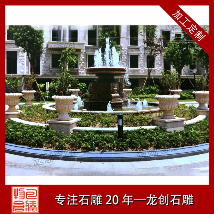 園林景觀石雕噴泉水缽雕塑是一種石材做成的盆狀或者罐狀的石雕作品,一般來說周邊有雕刻的紋路以及雕刻的附加飾品,然后組合成一個比較大的裝水,儲水的容器,并且部分石雕噴泉雕塑利用水壓把水從石雕噴泉雕塑的上端噴或者流出,形成一種特別的景象的石雕產(chǎn)品。石雕噴泉雕塑作為一種裝飾產(chǎn)品,所以一般適用于比較高檔的裝飾,不過隨著社會的發(fā)展,現(xiàn)在的水平高中低檔的價格可以滿足不同客戶的需求,從高端裝飾慢慢的成為了家居擺件,公司擺件,公園擺件,景區(qū)擺件等等。