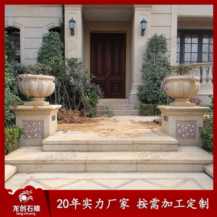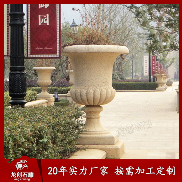 黃金麻石雕花缽和埃及米黃石雕花缽,是園林景觀設(shè)計(jì)中運(yùn)用廣泛造景元素,很多植物園、公園、草坪、廣場等處都有黃金麻和埃及米黃石雕花缽的應(yīng)用,使用不同品種不同顏色的異型石材可以與周圍景觀環(huán)境結(jié)合形成不同的視覺效果,對(duì)園林景物之間和諧、統(tǒng)一起到了很好協(xié)調(diào)作用。