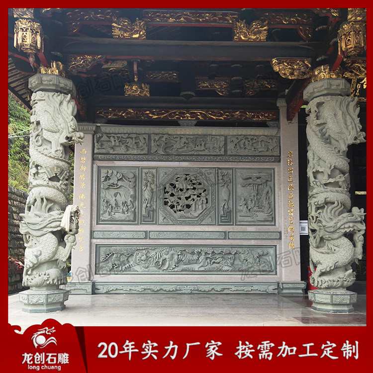 龍柱石雕的石材有青石、白石以及其他花崗巖石料,如果雕工要求很復雜的,一般是以青石為原材料,青石的石料單價也要貴很多。做工簡單的,則一般建議用普通的白石即可。普通的白石龍柱會比較便宜,石雕龍柱報價一般三四萬塊就能買到一對合適的3米高龍柱,以浮雕技藝為主。而真正價格較高的龍柱則一般是青石龍柱。龍柱一般有單龍和雙龍之分,雙龍的略貴一些,單龍的便宜一點。龍柱上面除了雕刻龍外,還會雕刻很多其他圖案。中華民族的圖騰是龍圖騰,中國人是龍的傳人,所以龍柱是無論什么國內宗教場所、公眾場所都會擺立的。