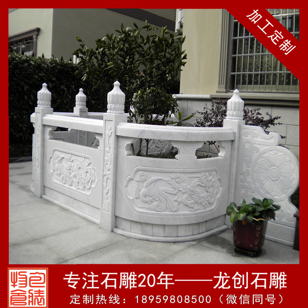大理石欄桿是我國傳統建筑最常見的組成部分,無論是在走廊、橋邊、花池、園囿、樓閣、臺榭等,都要用欄桿圍護避免發作危險。特別是在園林建筑傍邊,石雕欄桿是不可或缺的,既能夠攔隔圍護,將不同的區域區分開來,又不會將各個區域之間的聯系阻斷,特別是欄桿上的圖畫還能夠點綴環境。