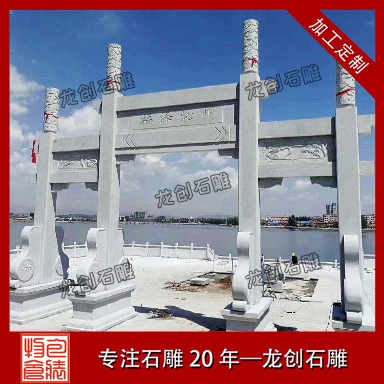 石雕牌樓作為中國有文化內涵的古建筑之一,建在景區入口、寺廟入口、村莊入口居多,是一道值得欣賞的亮麗風景線,石雕牌樓生產廠家,龍創石雕,生產各種樣式尺寸的石牌樓,質優價廉,歡迎直接來電咨詢選購。