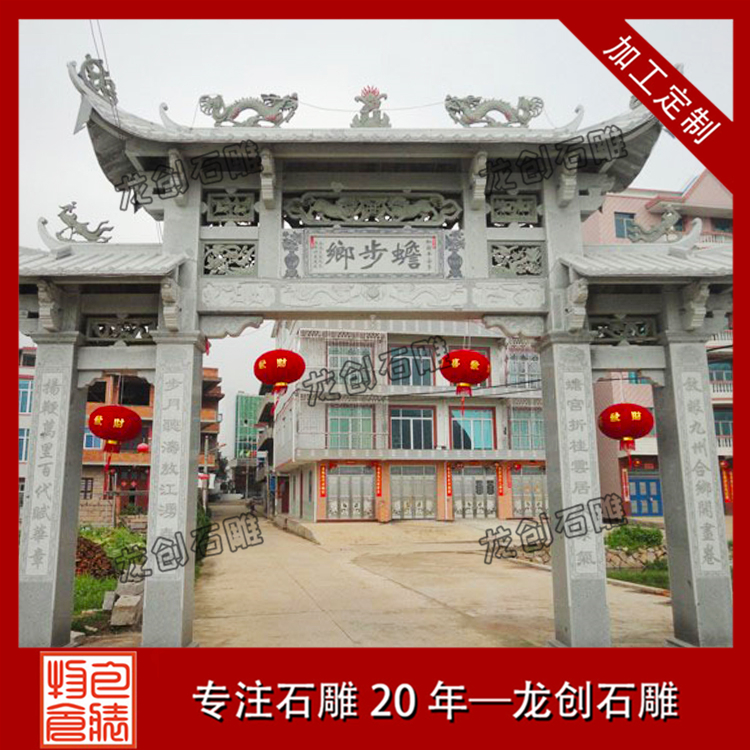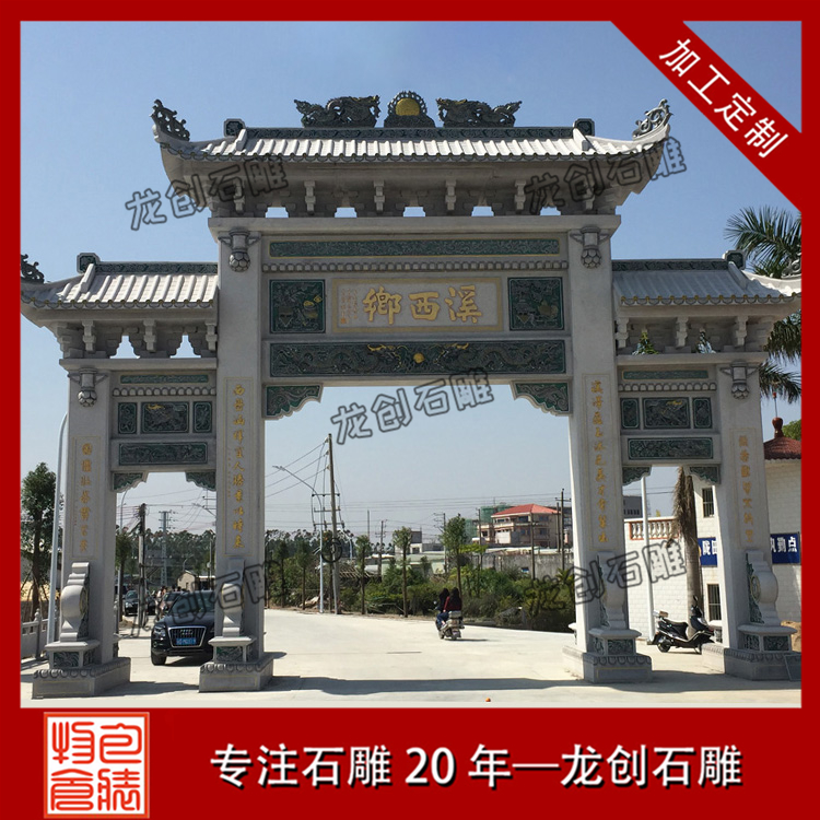 農(nóng)村大門牌坊定做當(dāng)然在材質(zhì)的選擇上都比較講究,為保障牌坊本身的美觀性和牢固性,在材料挑選上也都有非常高的要求。綜合現(xiàn)在牌坊的雕刻看,主要用料有青石、花崗石、大理石等,要說比較合適的牌坊雕刻用料,還是以花崗石為主,花崗石的材質(zhì)比較堅(jiān)固,花色也都比較多,能夠雕刻出更為細(xì)致的村口牌坊作品。