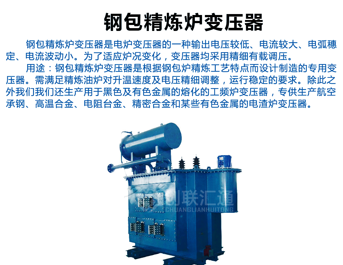 鋼包精煉爐變壓器是根據鋼包精煉工藝特點而設計、制造的專用變壓器,針對精煉爐對升溫速度及電壓精細調整、運行穩定的要求與之相對應的設計原則,設計制造的爐用變壓器。鋼包精煉爐變壓器是電爐變壓器的其中一種,鋼包精煉爐變壓器輸出電壓較低、電流較大、電弧穩定、電流波動小、為了適應爐況變化采用有載調壓型較多。