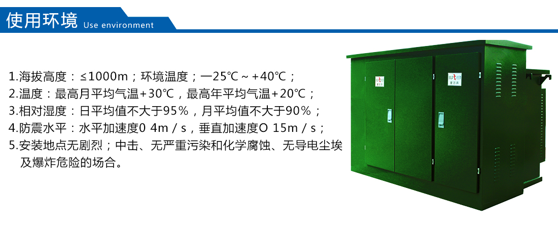 用于自然條件比較惡劣的海灘、草原、荒漠等無火災、無嚴重污染、無化學腐蝕介質和粉塵、無爆炸性危險運行環境。應安裝在水泥平臺或其它平整、堅實的平臺上。