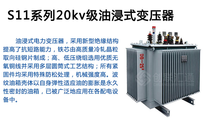 S11系列20kv級(jí)油浸式變壓器為配電網(wǎng)絡(luò)與工礦企業(yè)供配電系統(tǒng)中的重要設(shè)備,在工礦企業(yè)、農(nóng)業(yè)和民用建筑中廣泛使用,也可用于石油、化工行業(yè)中多油污、多化學(xué)物質(zhì)的場所。使用環(huán)境:戶外/戶內(nèi)使用,海拔不超過1000m。