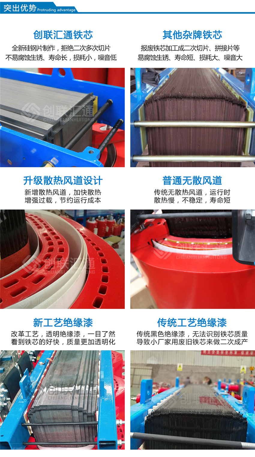 改良之后的干式變壓器加強絕緣等級,降低變壓器溫升,增加有功功率的使用,過載能力強,使用壽命長。
