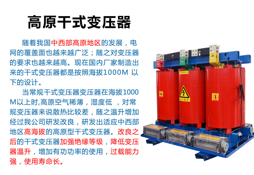 當常規干式變壓器變壓器在海拔1000M以上時,高原空氣稀薄,濕度低 ,對常規變壓器來說散熱比較差,隨之溫升增加。